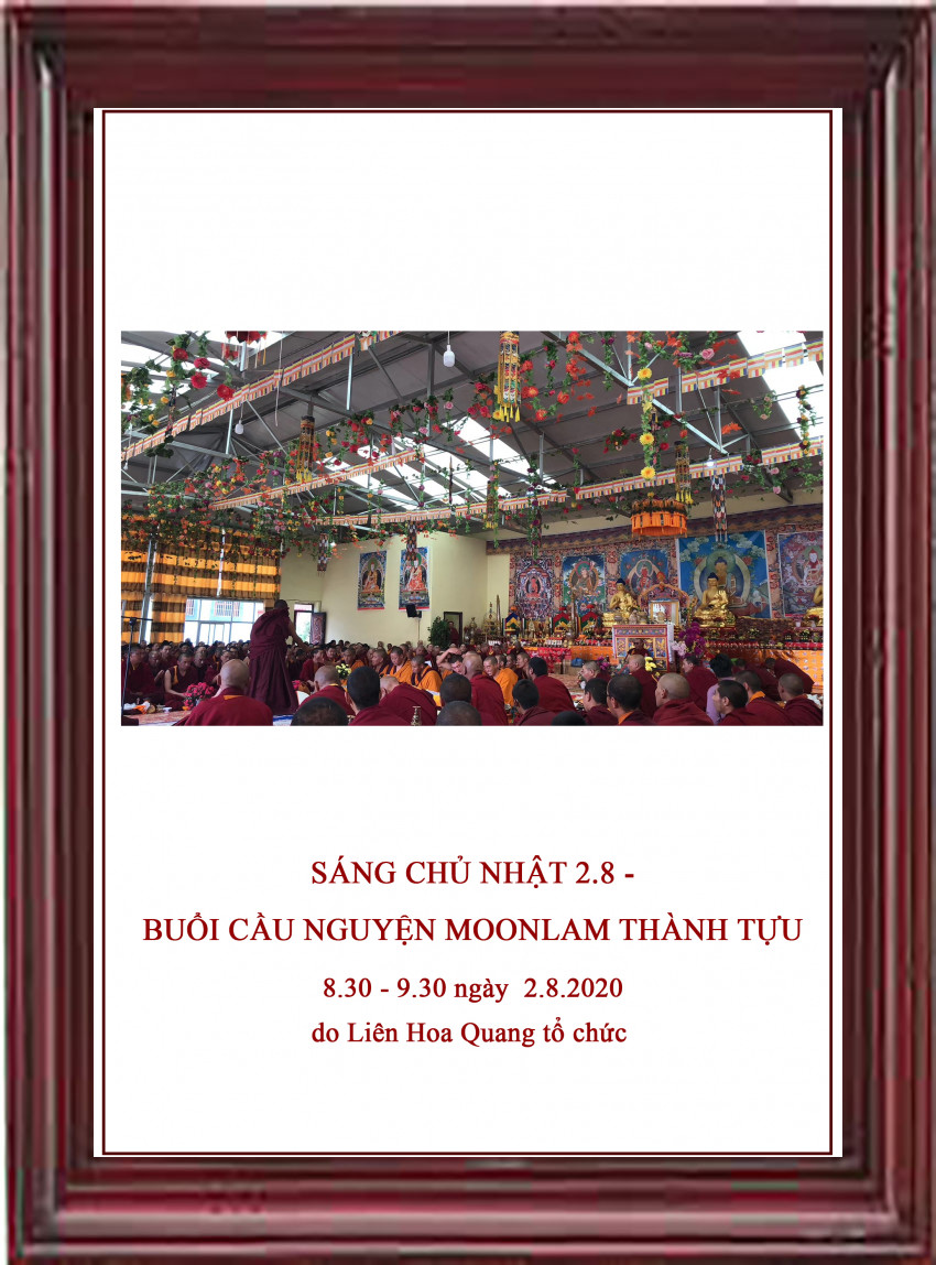 Hôm nay (2.8) là ngày hoàn mãn Moonlam và hồi hướng công đức tại tu viện Lungon, Golok. Sáng nay, LHQ sẽ phát trực tuyến buổi cầu nguyện “LỄ HỘI MOONLAM THÀNH TỰU” từ 8.30 đến 9.30.