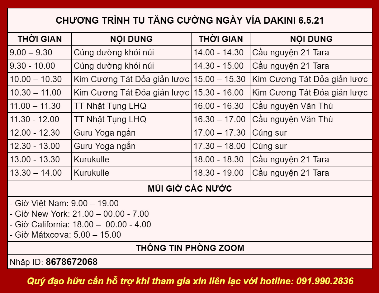 LỊCH TU TĂNG CƯỜNG NGÀY VÍA DAKINI 6.5.21