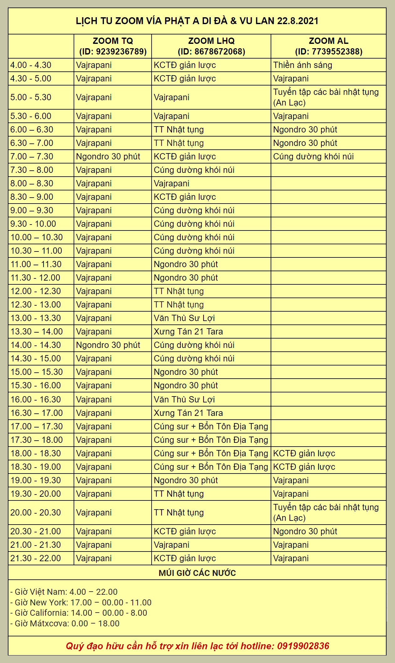 Ngày 22.8 là ngày vía Đức A Di Đà và lễ Vu Lan. LHQ xin gửi quý bạn đạo chương trình tu các Zoom.