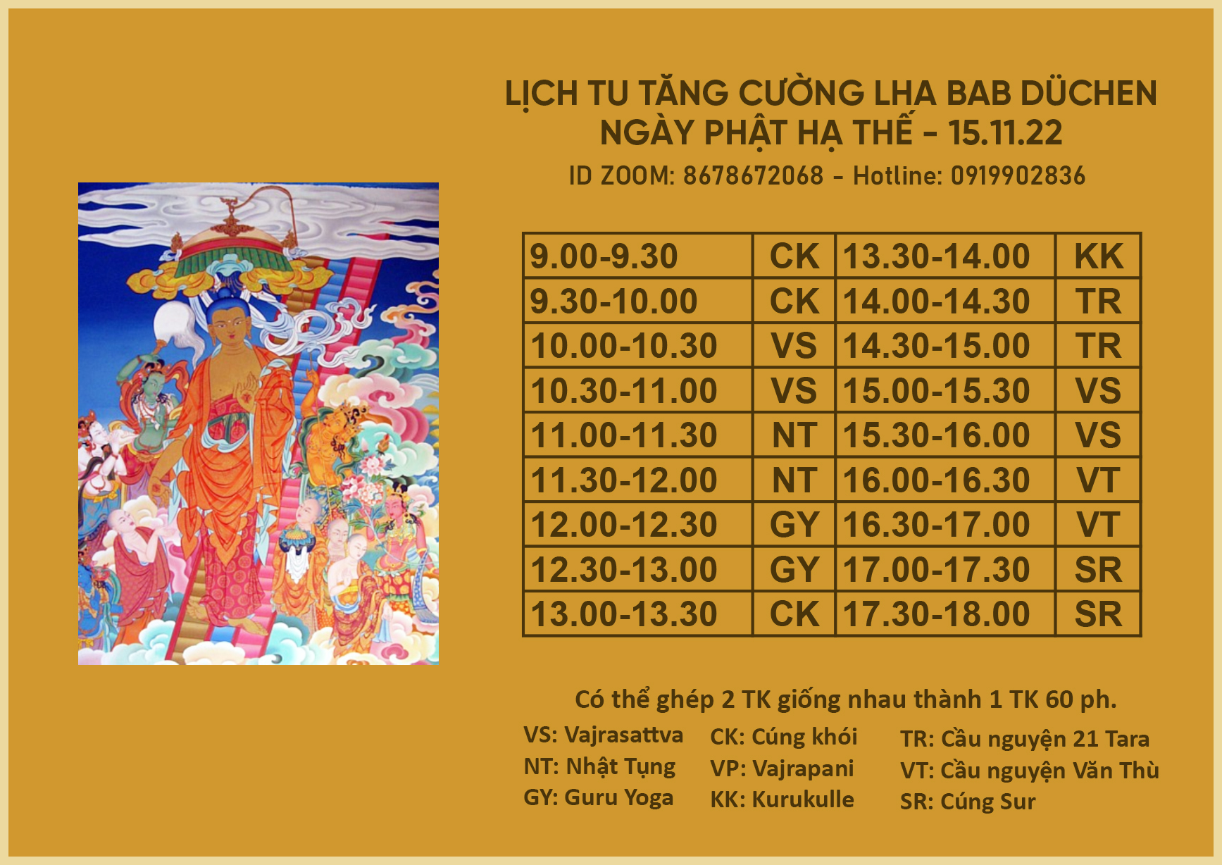 CHƯƠNG TRÌNH TU TĂNG CƯỜNG LHA BAB DÜCHEN - NGÀY HỘI HẠ THẾ TỪ CÕI TRỜI 15.11.22