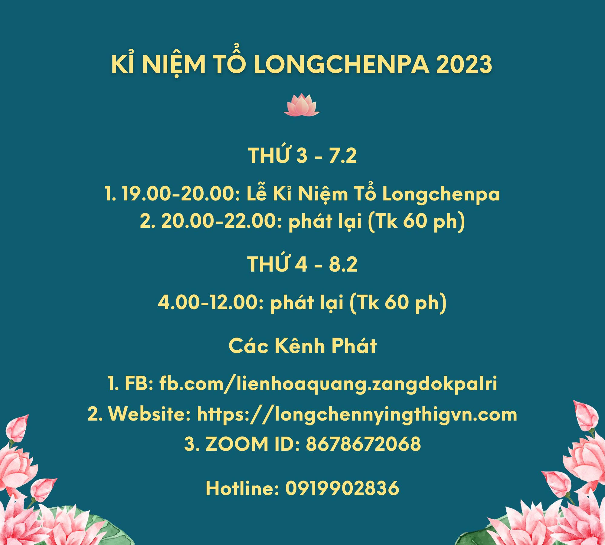 Chương trình Lễ kỉ niệm Tổ Longchenpa 07.02.23 - 08.02.23