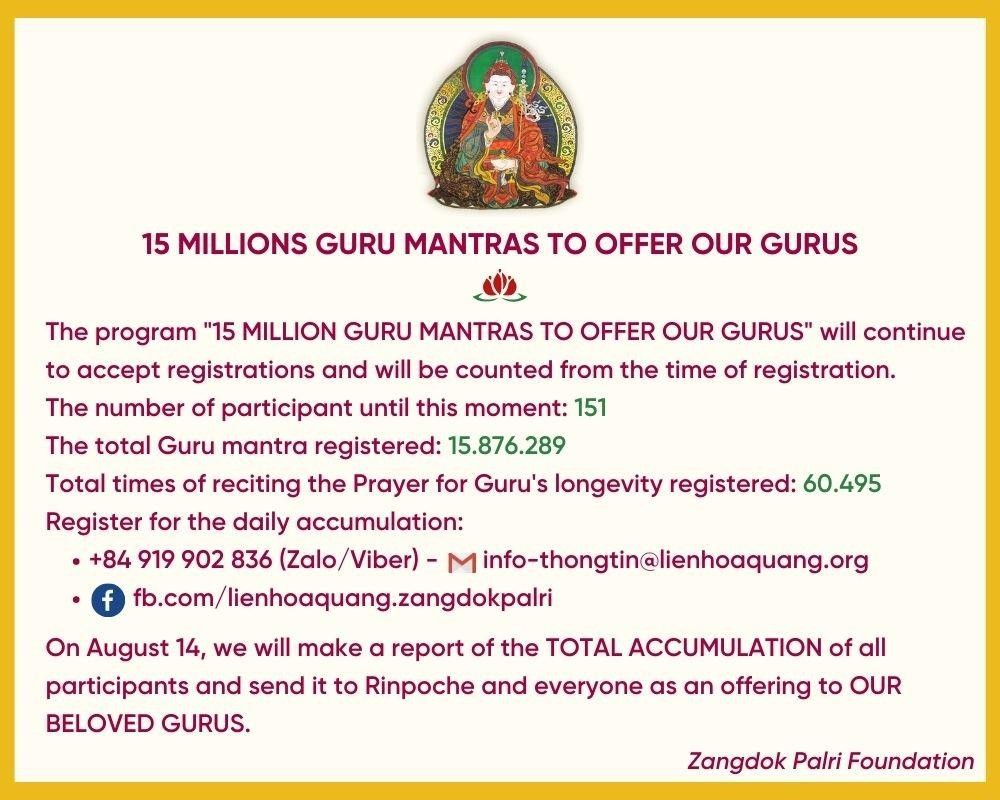 Tổng đăng kí trì tụng cầu nguyện trường thọ Guru: 60.495