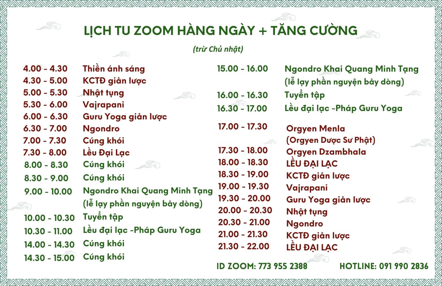 Quý đạo hữu phát tâm THAM GIA CHƯƠNG TRÌNH hoặc TĂNG TÚC SỐ TRÌ TỤNG xin liên lạc hotline (091 990 2836) để được hỗ trợ.