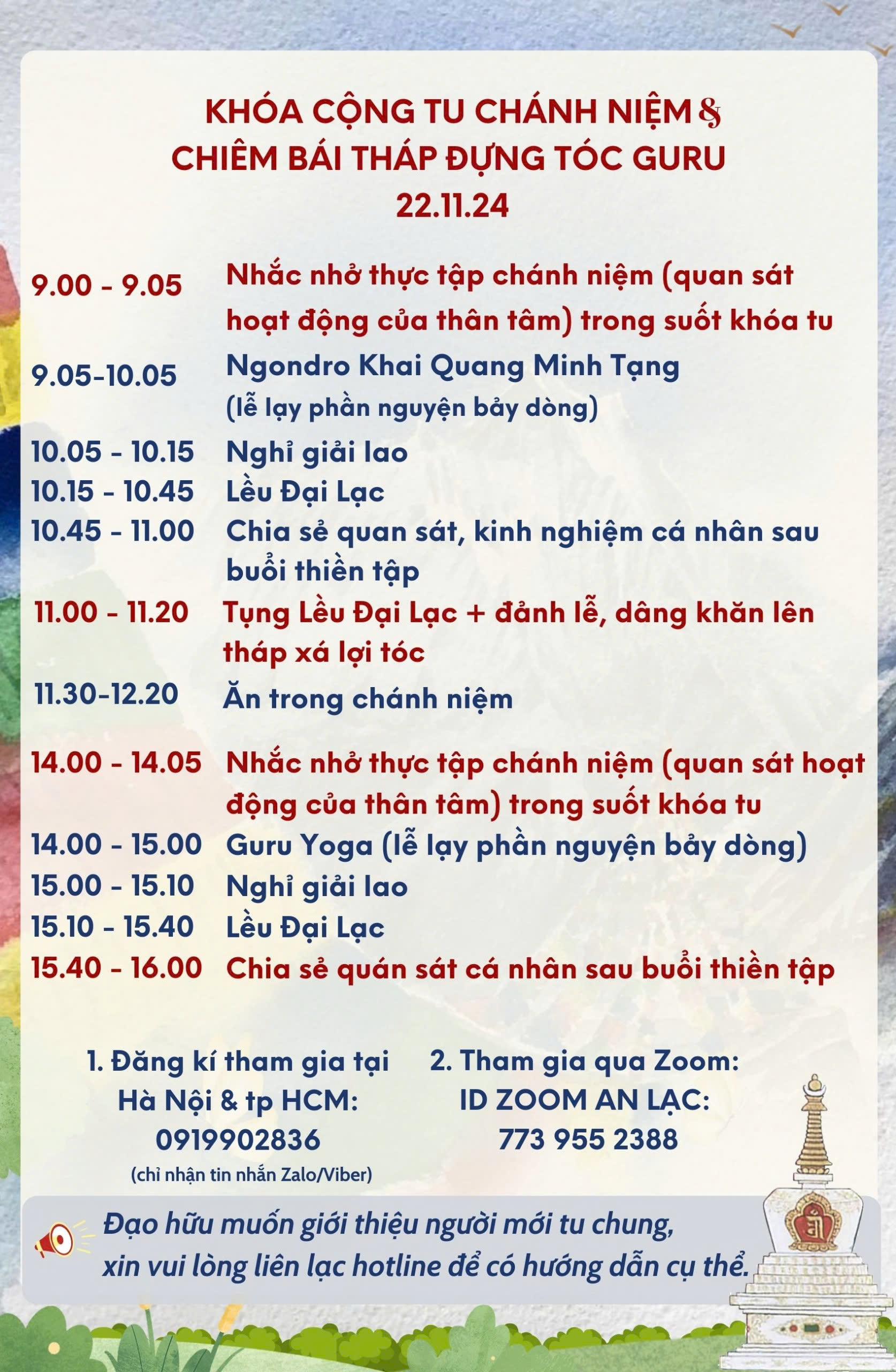Nhân NGÀY ĐẠI CÔNG ĐỨC (22.11.24), An Lạc tổ chức Khóa cộng tu chánh niệm và chiêm bái Tháp đựng tóc Guru. (Xin xem lịch dưới đây)