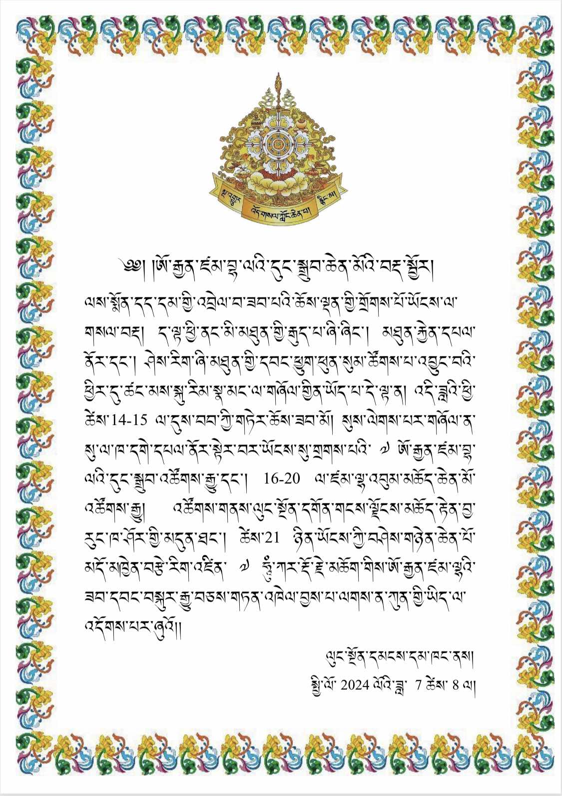 Xin thông báo đến toàn thể pháp hữu tham gia monlam. Hiện tại, bên ngoài bên trong đều không thuận lợi (ý nói cuộc sống quanh ta khắp toàn thế giới nói chung và riêng), vì vậy để có được sự sống yên bình và mọi điều thuận duyên về mặt đời sống hưng vượng cũng như việc học hành kiến thức mọi mặt, tất cả chúng ta đang nỗ lực hết sức để thực hành các nghi lễ cầu nguyện.