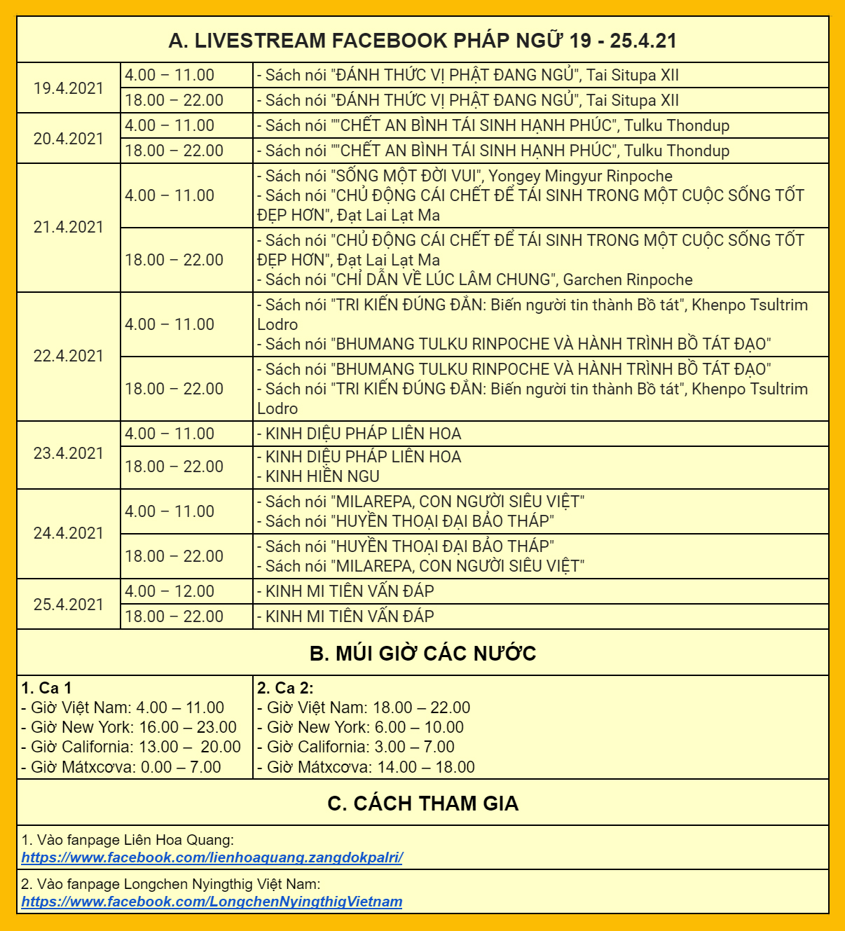 CHƯƠNG TRÌNH PHÁT TRỰC TUYẾN PHÁP NGỮ TỪ 19.4.21 TỚI 25.4.21