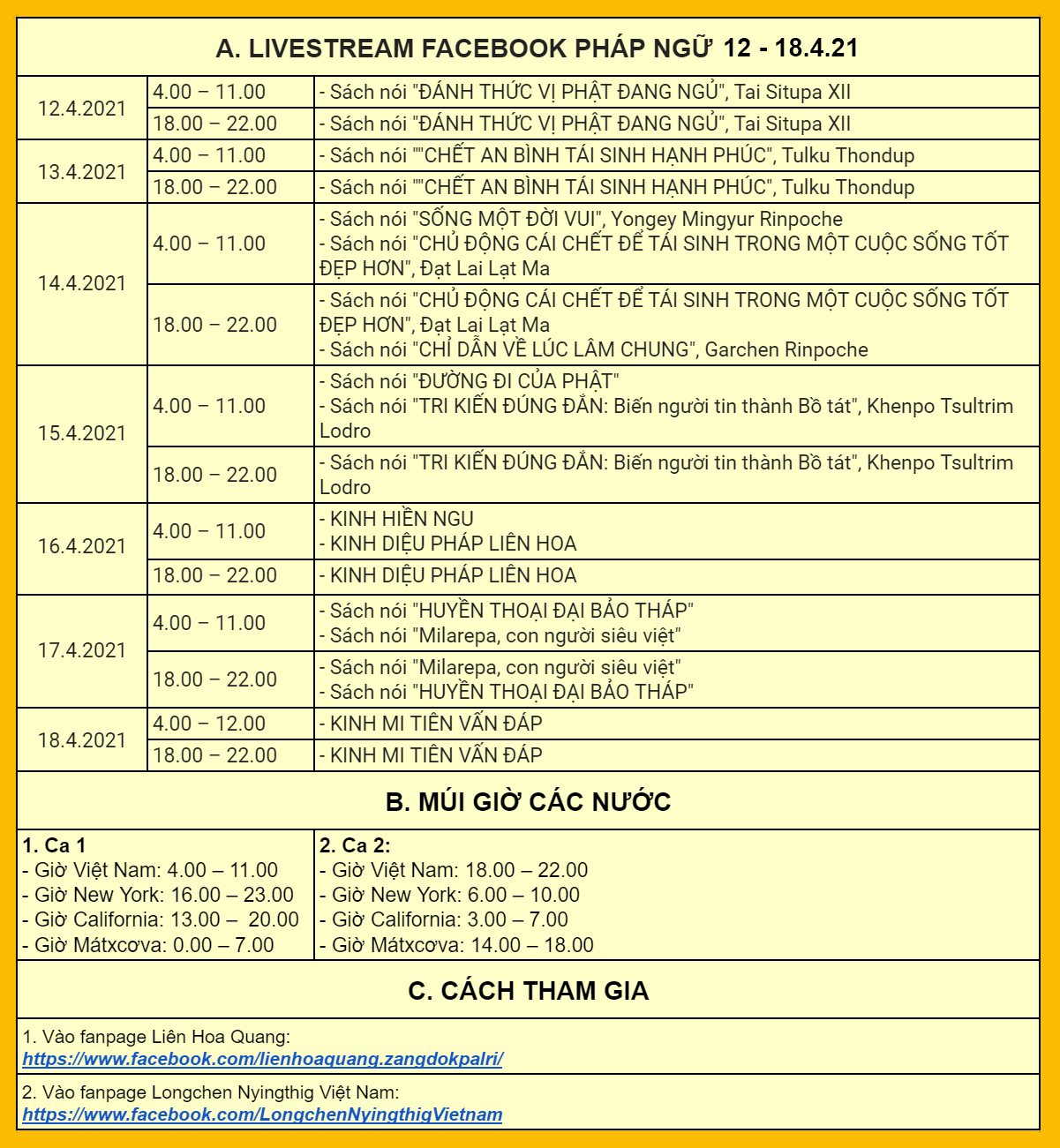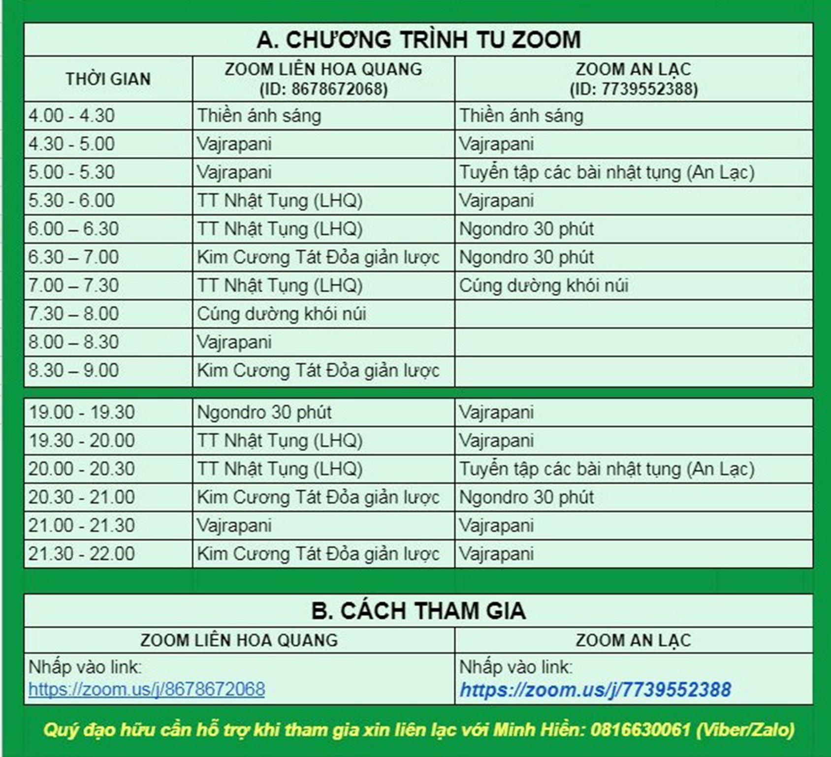 CHƯƠNG TRÌNH TU ZOOM HÀNG NGÀY 5.4.21 - 11.4.21